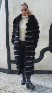 Crème de la Crème Noir Extra Long Hooded Faux Fur Coat by Dani Watanabe
